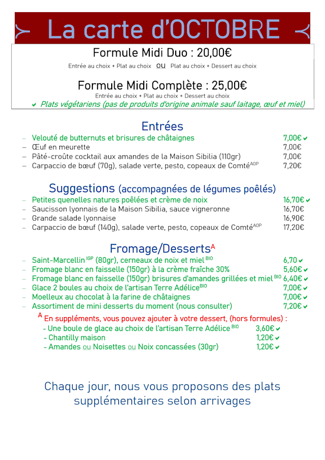 EuropeanFrenchMeat CuisineRegionalTraditional cuisineVegetarianBarbecueBistroBistronomicContemporary cuisineFrom marketTraditionalGluten freeVegan dishesVegetarian dishesAmerican ExpressCellar