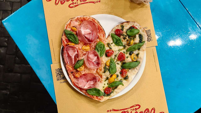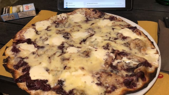 (Fiori di zucca, mozzarella, paté d'olive piccante)