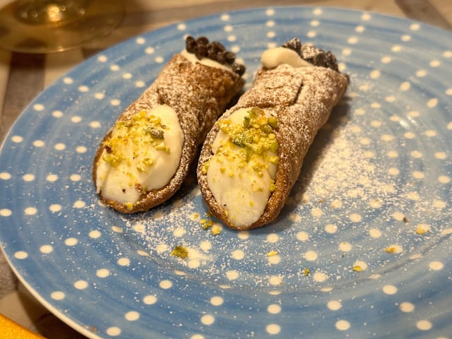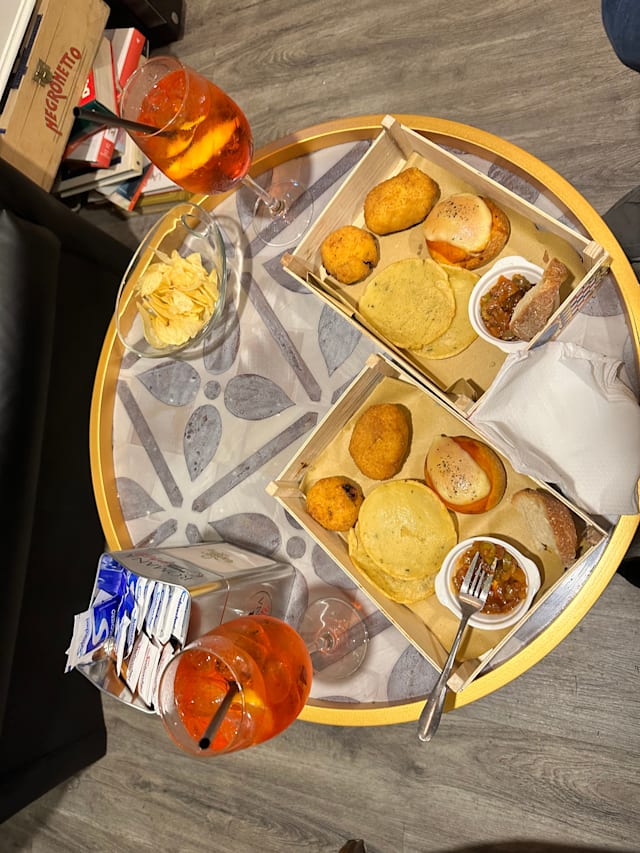 Il ristorante non effettua servizio di cena, bensì di aperitivo con piatti tipici della cucina siciliana: panelle, caponatina con pane bruscato, arancine mignon (burro, melanzane e ragù), bruschetta sfincione