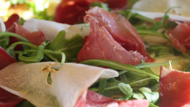 Fiordilatte di agerola, rucola, prosciutto crudo di parma, pomodorini, scaglie di grana padano e olio evo