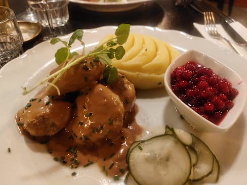 10/10The food was delicious, savoury. Ordered the Grill platter for 2, Swedish classics moose meat with lingon berries and salmon with small potatoes on the side. The servings the right amount. Cocktails mix of gin tonic was irresistibly awesome that our guest had 3 glass. Jean did the 5 star service in this Bistro. As menu were in Swedish, he patiently translated & explain in English. I would like to commend him for the impressive customer service he did.