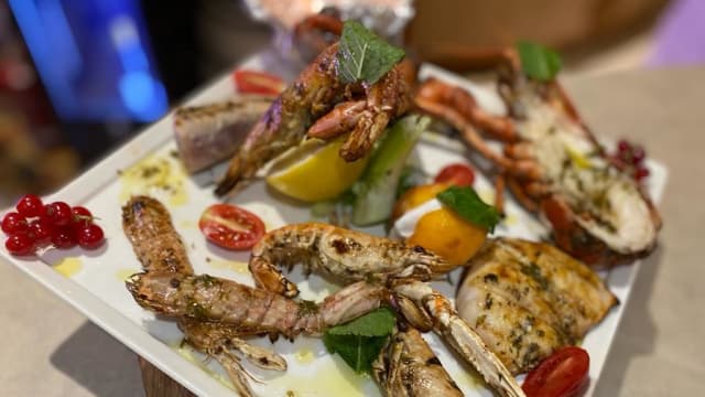 Pepata di cozze - primo di pesce a scelta ( spaghetti scoglio oppure linguine alle vongole)- frittura di calamari e gamberi ; dolce a scelta tra cheesecake o cantucci con vinsanto coperto incluso - bevute escluse