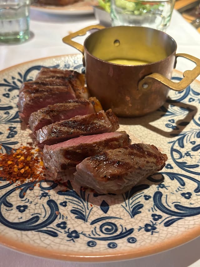 3/10The environment was below average , staff polite but their recommendations not very bright. Food was a disaster. We ordered grilled vegetables and olives for starters which was ok but nowhere close to great. Mains were the 60 day Galician beef stake and slow cooked ribs (Staff recommendation). The taste of the former was decent but texture and cooking was horrible, both being extremely dry and unpleasant to chew. We were quite disappointed considering the good online reviews.