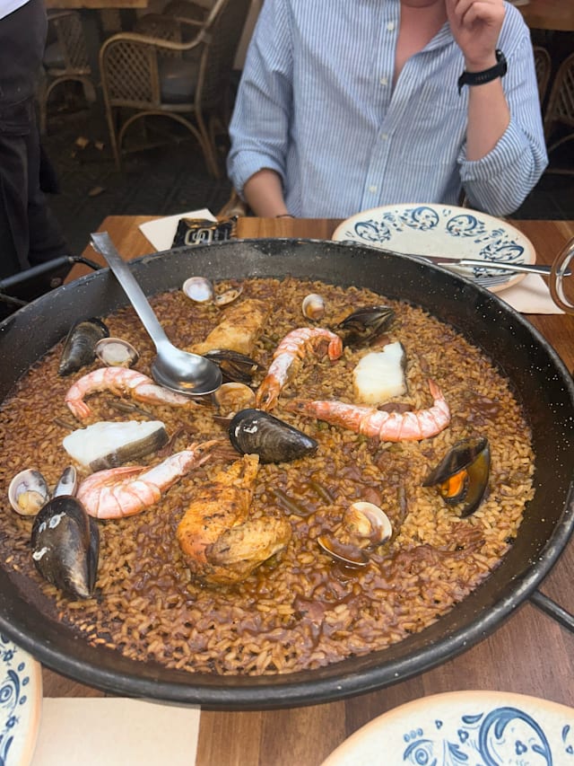 5.5/10We chose the chicken paella, even if outside is shown as available, but in the phisical menu it's missing. After we were happy they have it, we were dissapointed because the cicken was partially raw (was red inside). The position is ok, and for our friends that had the seafood paella was also ok. We also had a 30% discount because of The Fork.