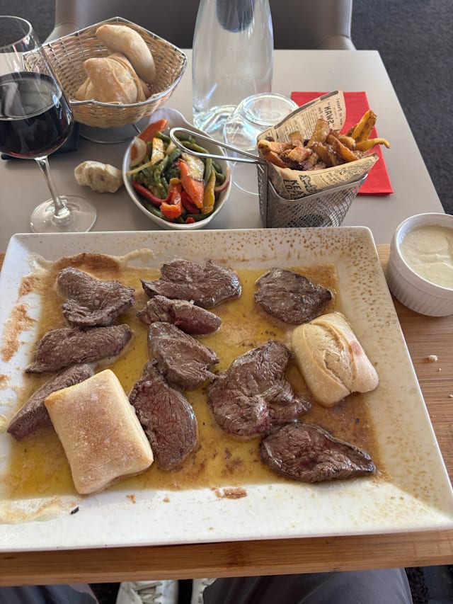 8.5/10Starters aside, the dinner was notably high-quality and flavorful. I highly recommend trying 'la spécialité de la maison' as the meat was exceptionally superior and provided an exquisite taste.