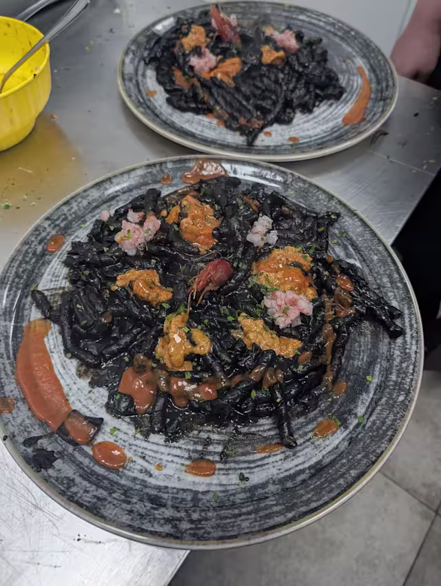 - Nero di seppia tartar di gambero rosso colata di ricci