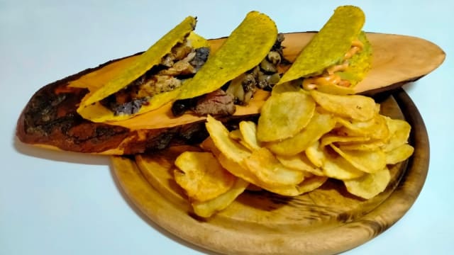 Tortillia di farina con i migliori ingredienti mare e terra uniti in un solo piatto , sarà la tua delizia
