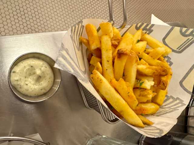 8/10Tasty smash burger with a French twist. I had a burger with Brie and apple sauce. It was unusual and delicious. The fries were good and I liked the bbq sauce on the fries. Quick service.