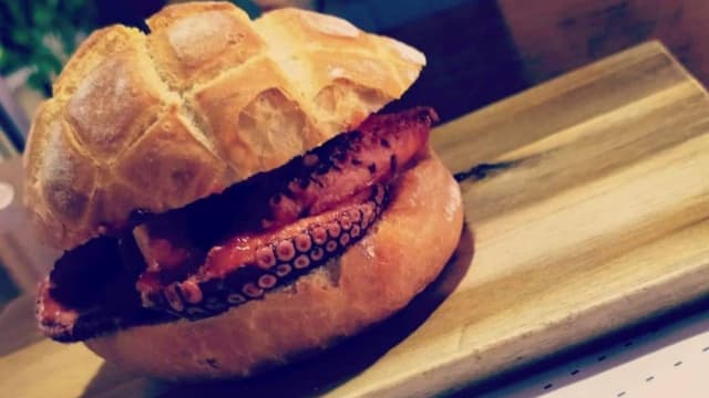 Bun, hamburger di scottona 180 gr homemade, capocollo di martina franca DOP croccante, caciocavallo podolico stagionato in grotta, insalata, pomodoro fresco, maionese