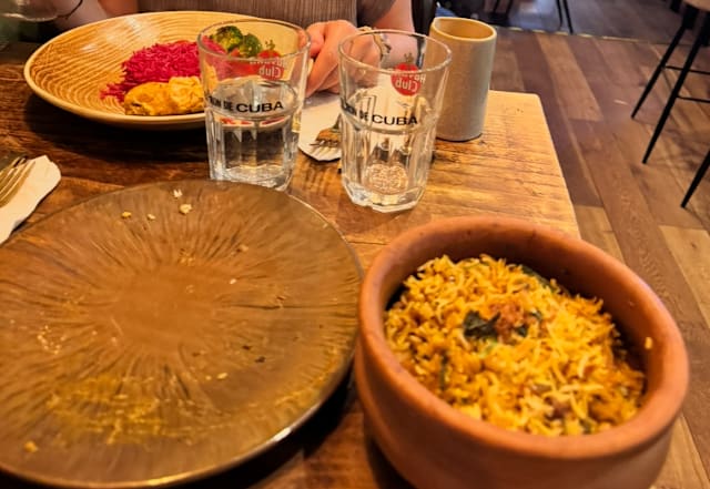 8.5/10First time at a Fusion Restaurant. Really did not know what to expect. From Starter to Dessert we were very pleased about our choices. The only thing regarding the food was beetroot rice. Prefer traditional rice. I ended up eating some of my wife's plain rice. Come from Scotland and are used to Jalfrezi and Tika Masala.