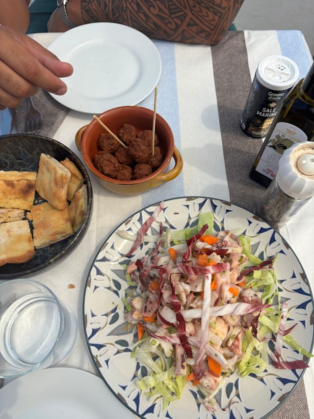 8.5/10Lovely casual roof top with nice views of Ostuni and the sea. Service and food were good.