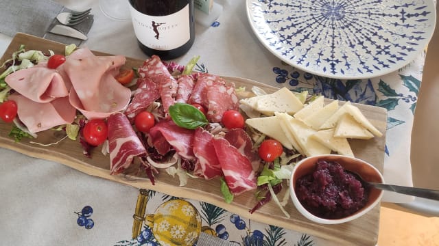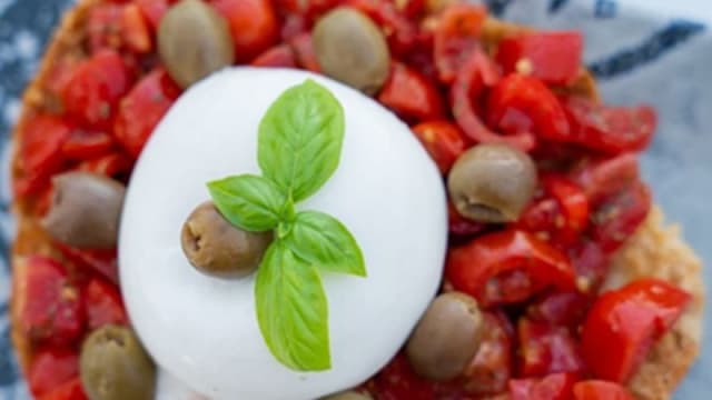 Frisella pugliese, olio evo, insalata di pomodori e origano, burrata, capocollo di martina franca, basilico fresco