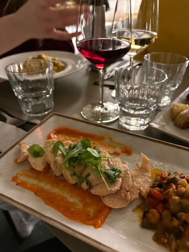 6.5/10The food was ok but the tortellini had meat even though it wasn’t mentioned in the menu and some people were vegetarian.
