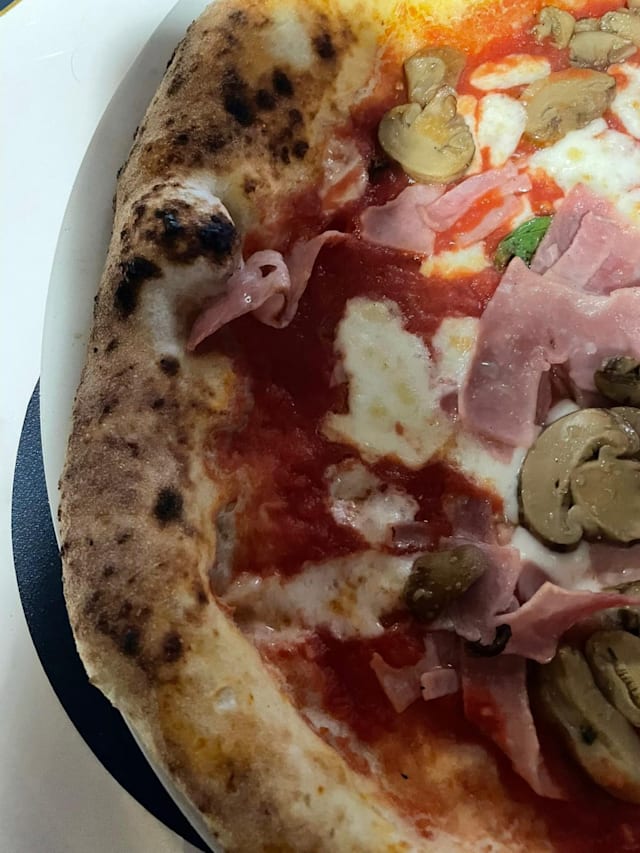 Pomodoro san marzano dop, prosciutto cotto, funghi, fiordilatte campano, evo oil, basil
