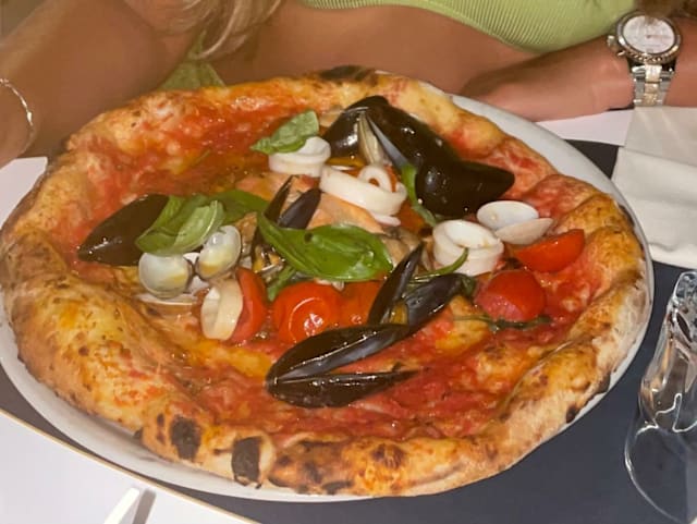 Pomodoro san marzano dop, fiordilatte di agerola, mozzarella di bufala campana, bordo ripieno di ricotta e salame