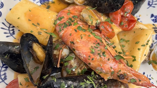 Pomodoro san marzano dop, cozze, vongole, gamberi e calamari