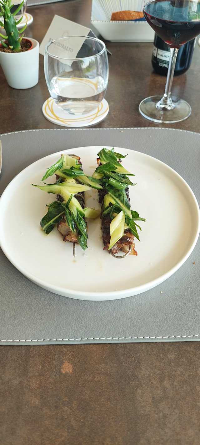 - Spiedino di manzo alla griglia con guanciale, servito con maionese al chimichurri