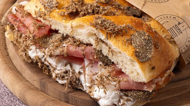 Lonza, stracciatella, pomodorini confit e salsa al tartufo (crescia bread from macerata 300g)