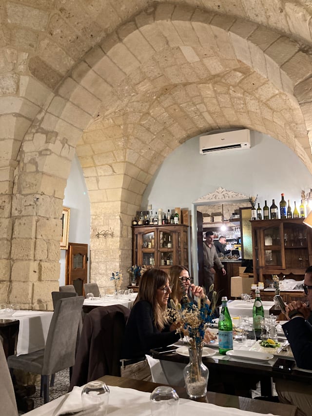 6.5/10Good fish food, small restaurant in the old town of Lecce. Informal but friendly service, although the staff was audible listening football during out meal