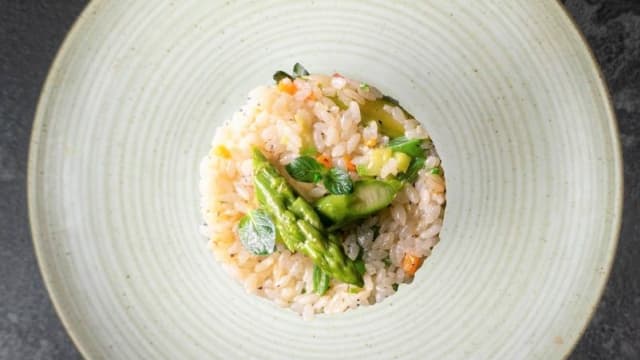 - Pasta miso, hondashi, sake Mirim, sake secco, erba cipollina, formaggio Tofu