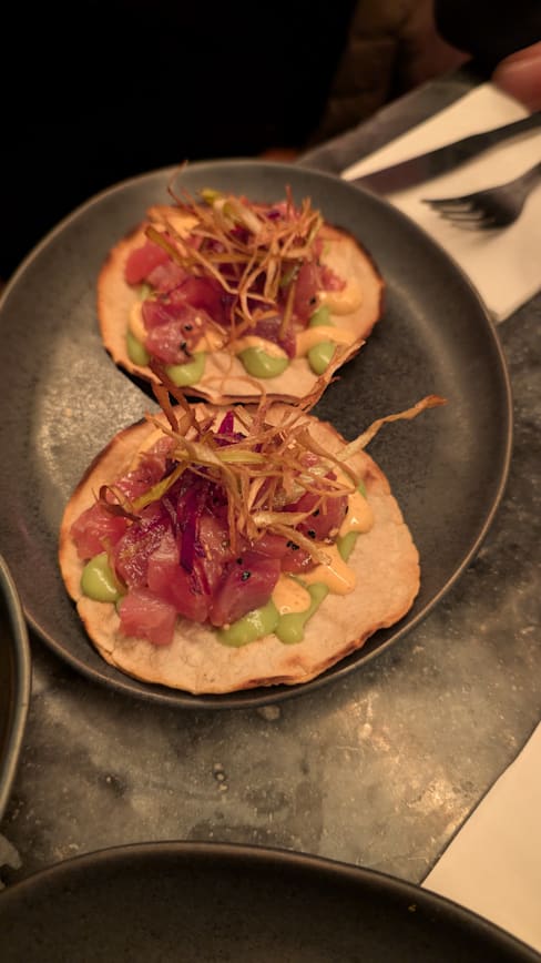 6.5/10The food was alright for getting 50% off using the fork but it's not worth full price. portions were small and expensive and the meats were pretty dry. The tuna tostada's were super delicious. The staff was nice but slow and didn't always clear the table when needed (and the tables are super tiny).