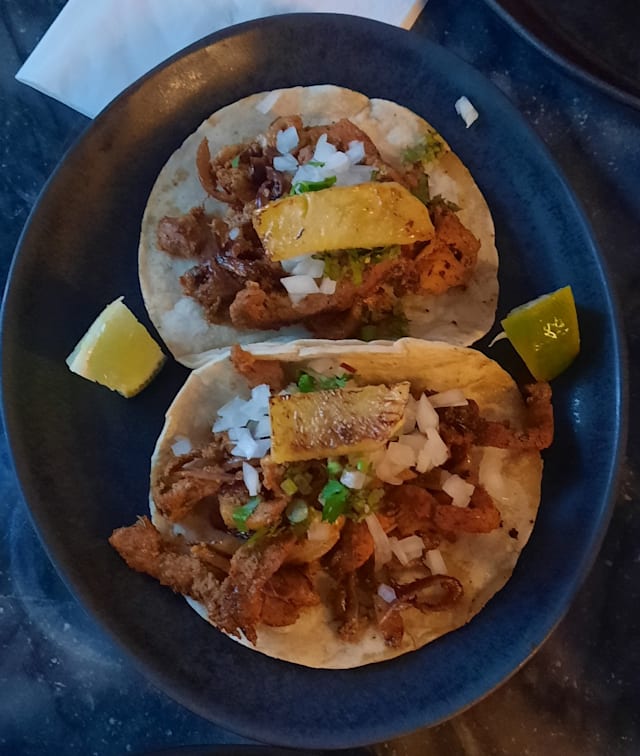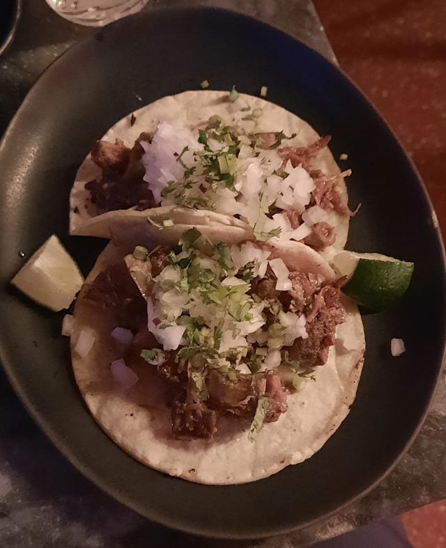 7/10Food leaves a lot to be desired tbh. Tacos we quite dry. Octopus ok,a little hard but eatable. When bill came we had somehow more drinks added than we had. All in all, it was 100 bucks for 2 people which is waaaaay too expensive for the quality of food they have and the ambience.