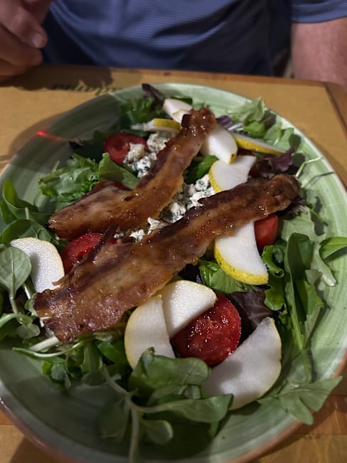7/10After 3 weeks in Italy I was looking forward to dinner here since a friend recommended it. Meh. I ordered a ravioli with pear and Gorgonzola ( I think it’s been a few days) but there was no pear at all. Waiter just shrugged and said something to the effect of yeah, chef is working on that. Not impressed.