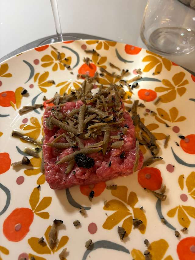 Tartare di scottona con stracciatella di burrata e polvere di pistacchio (130gr)