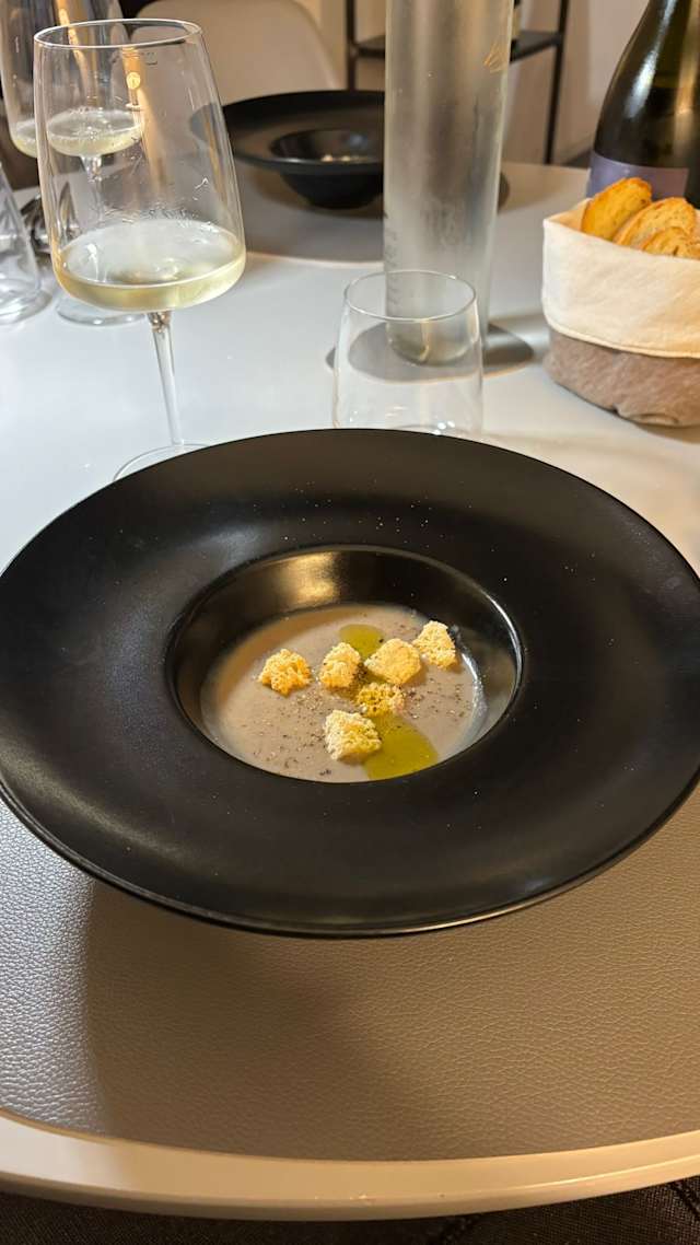 Hummus di ceci con tartufo e cubotti di focaccia croccante