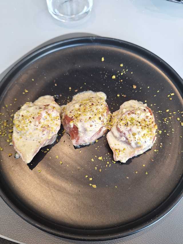 - Tortello gigante mortadella e pistacchi con polvere di pistacchi
