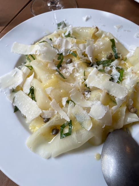 8.5/10the Celeriac Carpaccio and the Artichoke Tatin were the highlights. so fresh ! beef tartare was nice, enjoyed the jerusalem artichokes. the linguine with cockles was light, and very tasty. didn’t love the ragu, we also ordered the veal and salad; salad was rly nice but the veal was very chewy.