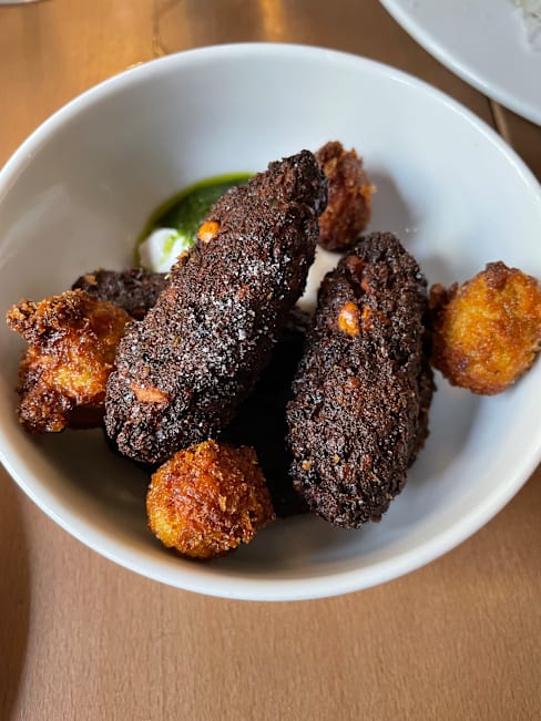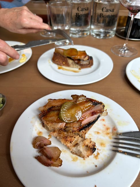 8.5/10My sister had visited earlier in the week on a business meeting & raved about the veal & lil fried olives~ needless to say the charcoal veal, lamb ragout, fried olives & chocolate tart are what dreams are made of. Altho our entire meal, drinks & visual of kitchen staff preparing meals (think of a Barcelona version of upscale The Bear episode) were all part of a memorable experience. I’ll have dreams tonight of the tasty veal and ragout!!! If you’re looking for for a great meal, excellent service & ambiance that’s inviting, attentive but not stuffy make a trip to Bodega Bonay! Your taste buds will thank you!