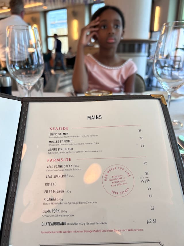 9.5/10Food and wine were both first class- service attentive without being intrusive. Great location and would undoubtedly go again. Decent value for Switzerland