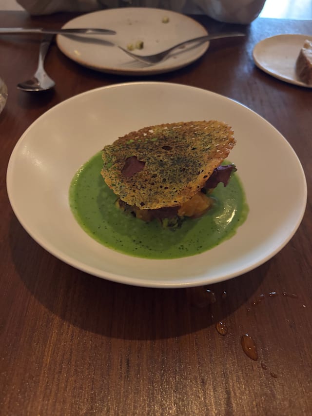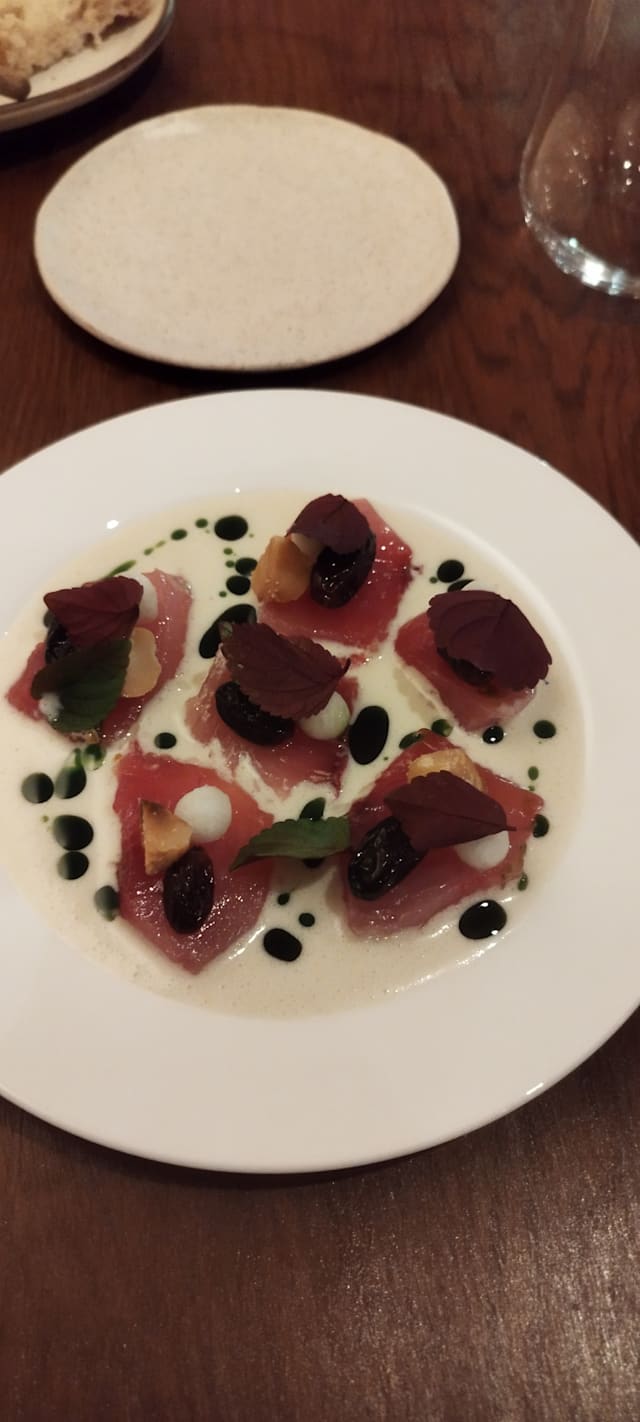 10/10+1The restaurant is tastefully decorated and exudes a warm and welcoming atmosphere. There are noise deadening panels strategically placed on the ceiling, making conversation easy, not the usual thing in Madrid restaurants, where echo can make intimate chats difficult. Front of house is looked after by Patricia, who is excellent at describing the dishes and is also a seriously talented sommelier, so your choice off wine is made easy. The wine list is one of the strong points of this restaurant. Patricia has selected some of Spain’s best at very affordable prices. You can generally eat very well in Madrid but it’s not so easy to drink well. Here you can do this with astonishing ease. Aaron is a truly talented chef and I augur a great future for any gastronomic venture he is involved in. He cut his teeth in the tough world of high end cuisine in London. Then he worked in Michelin starred eateries in Madrid, His food is simply exceptional and so very imaginative. You have to try it.