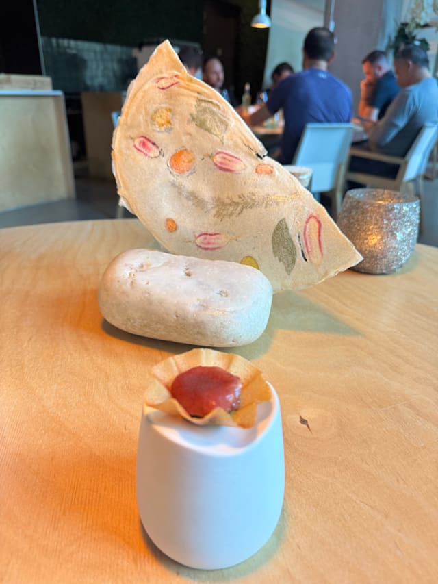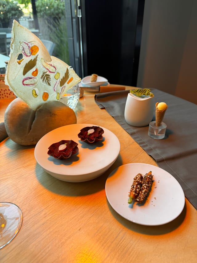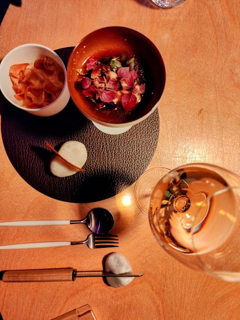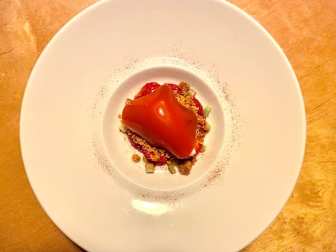7/10The staff was friendly and very accommodating when I first arrived. The atmosphere was relaxing and calm. It was lovely for staff to carefully explain the ingredients for each dish. I enjoyed the appetizers at the start as well as the side dish (bread, home-made spread, olive oil and salt). I really liked the sweet wine but for €10 for each small quantity which was not even half a glass was really expensive. The second dish (tomato, rhubarb and herbs) was average because of a strange smell from the cherry tomatoes which I could not comprehend but it was just me. The fifth one (Roebuck) was not up to my liking and I felt the flavor was not well mixed. In addition, the crunchy bites were not very accurate for this dish. The dessert which I liked the ice cream mixed the waffles together with the sweet caramel but the chocolate balls were not a good addition because they were dry, which could ruin my tasting. Overall, I am satisfied with my evening but I hope this improves a bit better.