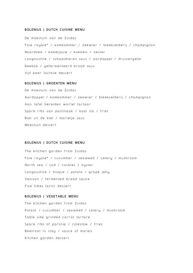 9/10My wife and I visited Bolenuis for the first time this evening. The food was very creative and delicious. Good wine pairings, especially an unusual joining of a winter ale with the chocolate dessert, which turned out perfectly. Very professional and attentive staff. The chef has incredible skill in preparing vega dishes. Nice atmosphere. Good location. 9/10.