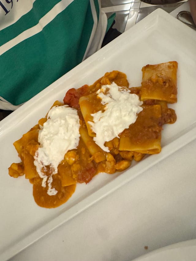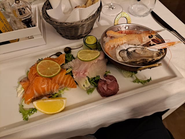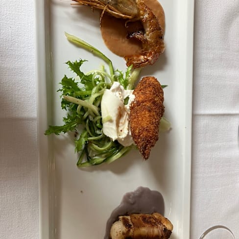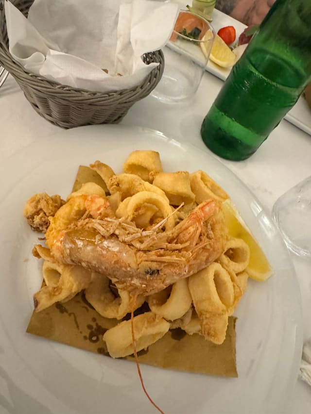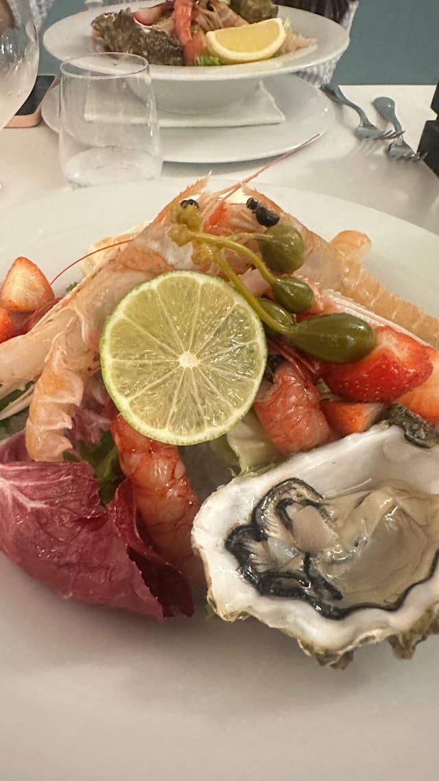 6.5/10Let’s start with the outstanding - wonderful, old fashioned service with the correct mix of friendliness and professionalism hard to find today. I wish we could take our lovely waiter everywhere with us! The restaurant did not look like much from the outside, but once inside you are in a little haven in a not-so-exciting area. Familial decor which is perfect for its proposal. Alas, for me, the food was a pass! 90s style unnecessary flourishes such as scribbled nero on plate with herb decor. Oysters (from Ireland? In Italy? Why???) with strawberry decor, Frito Misto served on a bed of undressed green frisée. I did not enjoy my dishes at all but have put it down to you win some, you loose some. I’m fairness, the locals seemed to love it. I really wanted to love it too, as the service deserved food to match it, but the quality and style are far, far away from what I’m used to having in Italy.