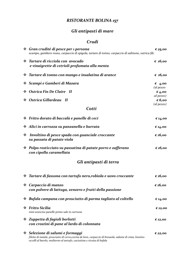 10/10Outstanding as usual. This time I must congratulate the waiters for the excellent service despite a very busy evening. Seafood top quality, dessert outstanding (cannolo siciliano) wine list reasonably priced.