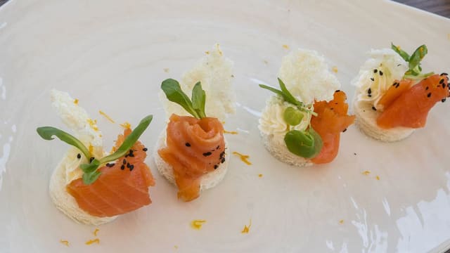 Tartar di salmone affumicato, mela verde e yogurt al cardamomo