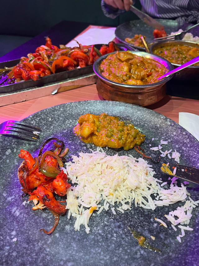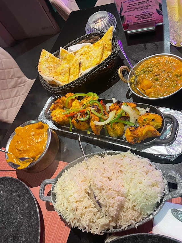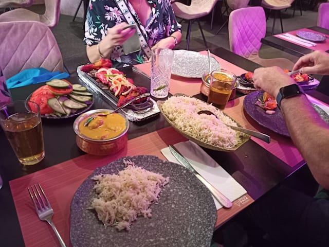 2.5/10We were forced to order 2 main course and the taste was no where close to what a typical indian dish tastes like. It was all sweet amd not making any sense. The staff was behaving in a rude way. The music was really loud and it was irritating. We were not able to have a conversation.