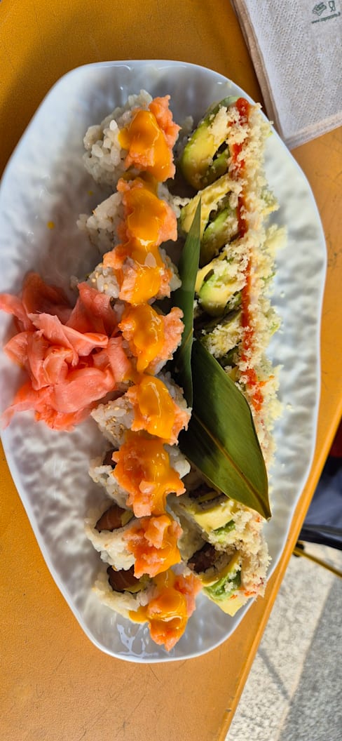 9/10Right on the main navigli canal, this is a very decent sushi place. We sat outside as the weather was perfect and were waited on by a very warm and attentive person. The only thing we did not like were the uncomfortable tiny metal chairs. For appetizers we had two of their fried prawn dishes - one plain breaded coated and other tempura style with a light lemon mayo coating - both were perfect. Tried something like a ceviche which was a miss. Their salmon nigri , salmon mango uramaki and spicy tuna uramaki were all delicious. Would recommend the place for a fun sushi meal.