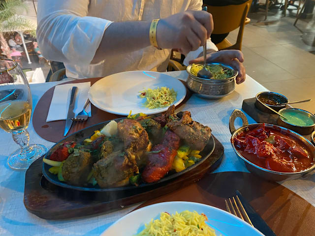 10/10We visited late Saturday night, we’re Indian food lovers and back home eat Asian and Indian food from different places. This place by far was absolutely amazing. We had poppadoms and pickle tray 2 beers and 2 glasses of wine. Our starters were delightful onion baji and chicken tikka which came with the most amazing garlic dip. We ordered garlic naan egg rice and Rogan Josh and chicken Karari. They made it to our liking medium. Medium hot. Plenty of meat and herbs spices you could really taste the ingredients and flavours. It was fresh and a perfect consistency. The setting and atmosphere was relaxed and had a certain ambience feel to it. The staff were very attentive and nothing was too much trouble. The courses were served in good time. No rush no delay. We would highly recommend this place if you’re an avid Indian food lover. You won’t be disappointed it was the best we’ve had in a while they definitely know what they’re doing. Trust us give it a try.