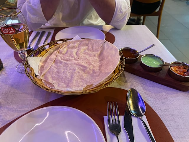 5/10Food was decent, good flavours, unfortunately plate was dropped at the table beside us, curry etc on it, went everywhere over guys shoes table beside us and over my white top back left shoulder area. Accidents happen, we've all dropped plates at some point, it's how you deal with it as an establishment. The sauce from the plate was still on the floor 15 minutes later, wife went to the toilet and almost upended herself🙁told by the girl who served us don't put any wipes etc on the stains, after being given lemon flavoured wipes by another member of staff for the stains. Soap and water will do the trick same girl who served us said, had a few goes at the toilet, not happening. Still given bill though, token bottle of wine to take away was offered at the end, we declined, say again its a shirt, expensive armani one but accidents happen, wife and I so don't want hassle or grief, just a good meal, but I'll say again its how a restaurant deals with accidents that is important. Avoid id say.