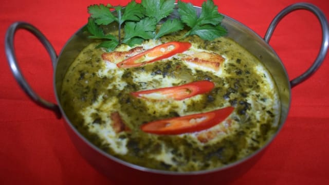 Spinazie en indiase kaas (vers bereid) heerlijk groen en lekker zacht curry
