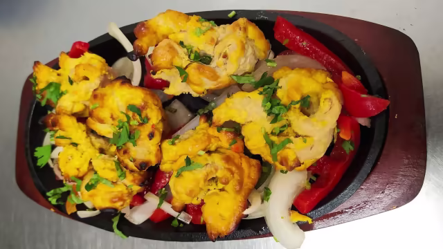 - Morceaux de poulet désossé, mariné aux herbes et épices indiennes grillé au four traditionnel