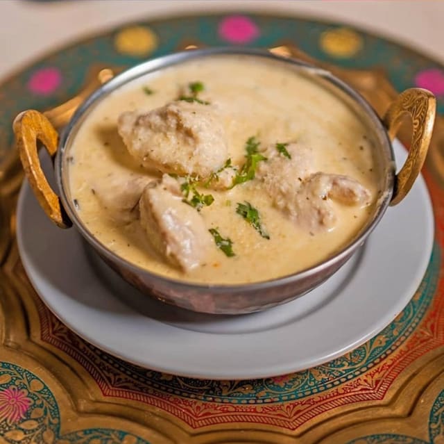 Cordero tikka en una delicada salsa de hierbas, coco, anacardo y nata.