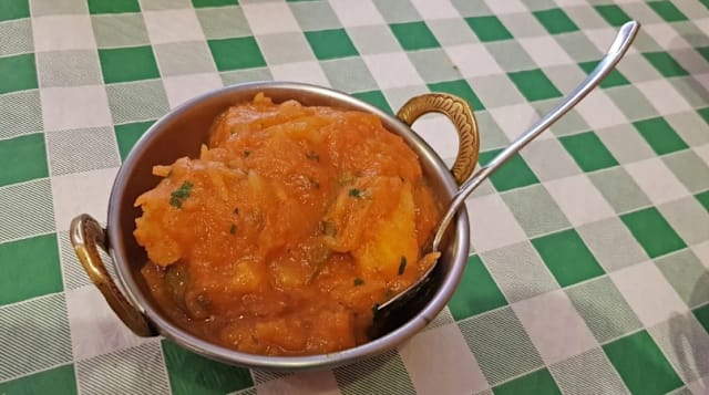 Cordero especiado en una salsa dulce ajo, jengibre y sultana.