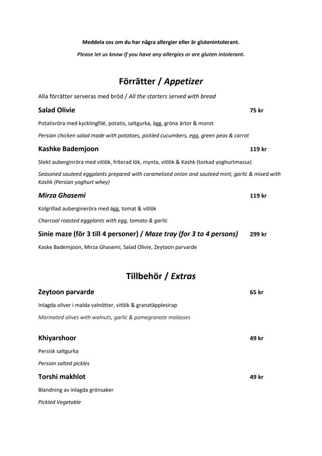 IranianMiddle EasternBarbecueLambRiceBirthdayGood for familiesLunchOutdoor diningRomanticTraditionalWith friendsChristmasChristmas and New YearFather's DayMother's DayNew year's eveNut allergiesVegan dishesVegetarian dishes