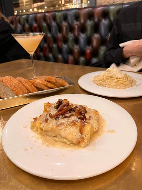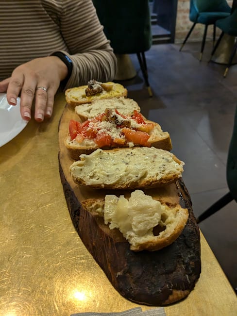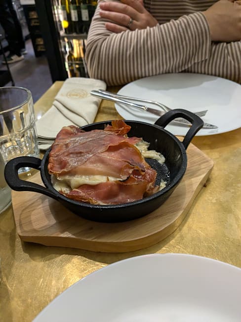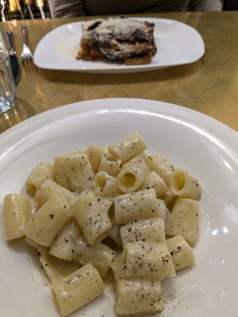 9.5/10This was our first meal in Rome, and would really set the tone of this trip. We got an excellent introduction what we should order. Our antipasti were the scamorza con prosciutto, and I had the bruschette selection because it was recommended it would give me a taste of what to expect from the pasta. Excellent choices both, and after the bruschette it was clear to me I had to order the wonderful cacio è pepe. My wife followed the recommendation to eat the eggplant parmigiani. According to her, it was the single best dish she ate while we were in Rome, high praise. If I have one complaint, it was a bit chilly in the restaurant, and my cacio è pepe was cold very quickly. But it still tasted wonderful! Would definitely come again.