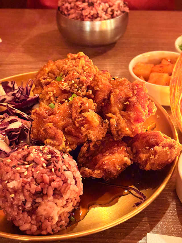 6.5/10The fried chicken was just okay, and the bibimbap was a bit disappointing. The first dish was wrong, and the second one lacked flavor.